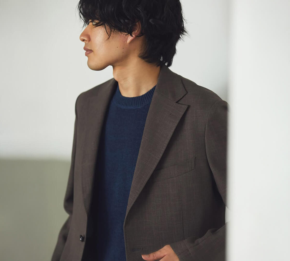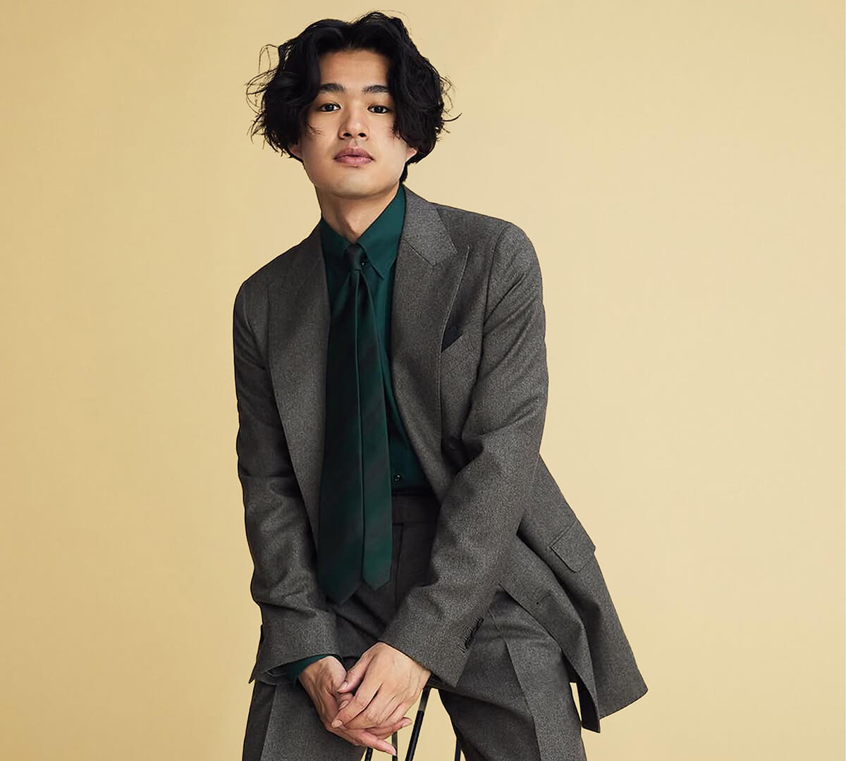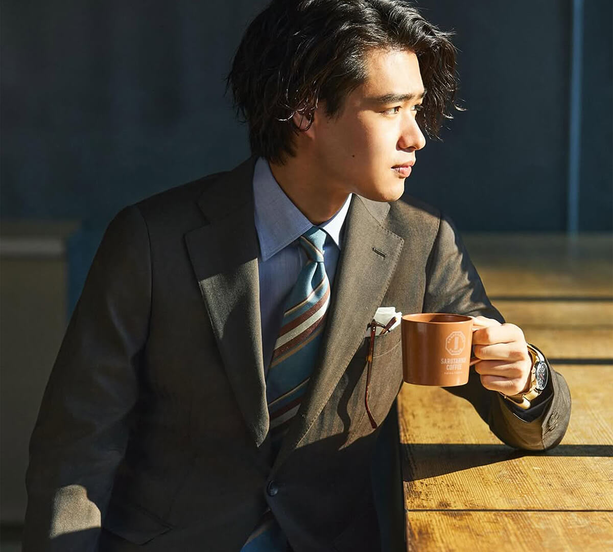 คุณลุค อิชิกาว่า สวมสูทรุ่น Shower Clean สีน้ำเงินเข้ม กับเสื้อเชิ้ตขาวคออิตาเลี่ยน โดยไม่ต้องสวมเนคไท ดูหล่อเนี้ยบ และสบายในเวลาเดียวกัน